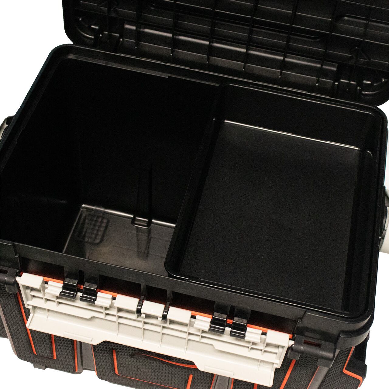 BM-9000の機能性・耐久性はそのままに、持ち運びやすい小ぶりなサイズで設計。小さくなっても容量28Lと余裕の収納力は健在です。船上など限られたスペースでも扱いやすいよう蓋を開けたときに90°で止まる直角ストッパーを採用するなどあらゆるフィッシングシーンでアングラーを満足させます。