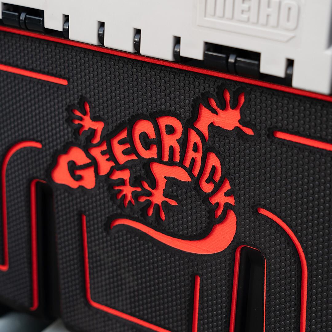 側面のシーデックにはヤモリロゴを配置、フタにはGEECRACKロゴを刻印した限定モデルです。シーデックは上蓋含めて3面のみ貼り付けてあります。